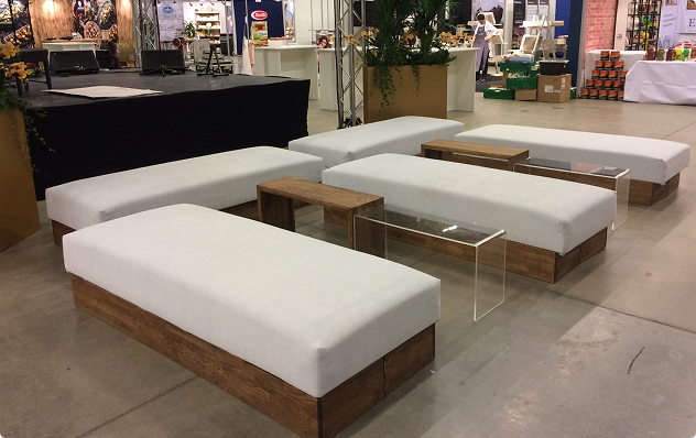 Vi har det du trenger til din messe: vegger, møbler, tepper, belysning, AV-utstyr etc. Har vi det ikke på lager, så kan vi skaffe det.